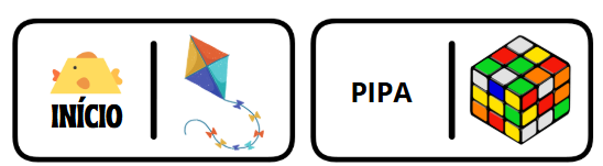 O material apresenta 10 peças de dominó, onde o jogador deverá juntar a imagem ao nome correto.