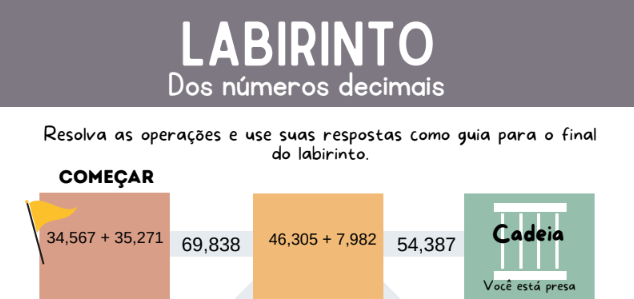 O aluno deverá resolver as operações encontradas no labirinto para encontrar a saída.